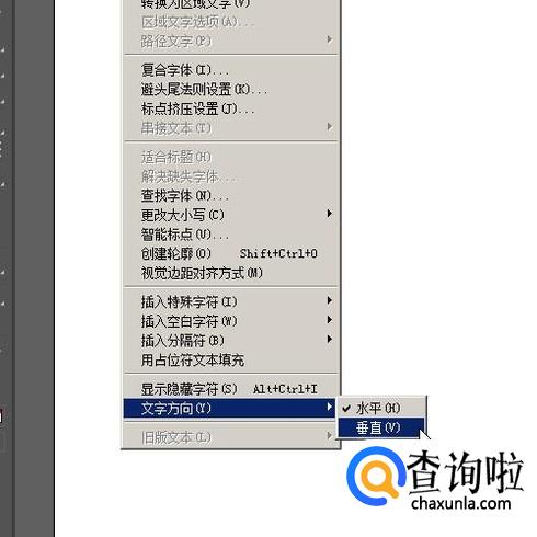 鼠标再点击下拉菜单中的“文字方向”;右侧弹出子菜单再点:垂直。