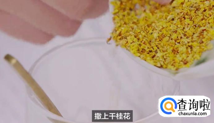 桂花栗子藕粉羹:藕粉30克、栗子粉适量、糖桂花适量、干桂花少许
