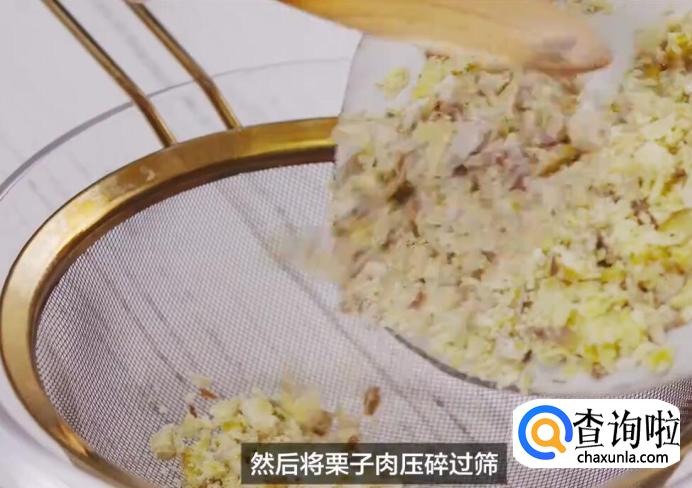 3、栗子煮熟之后,不能捂,不能闷,时间久了会发黑,做成栗子粉后,可以保存时间长一点,可以加入黄油、奶油,做成内馅儿,直接涂在面包上。
