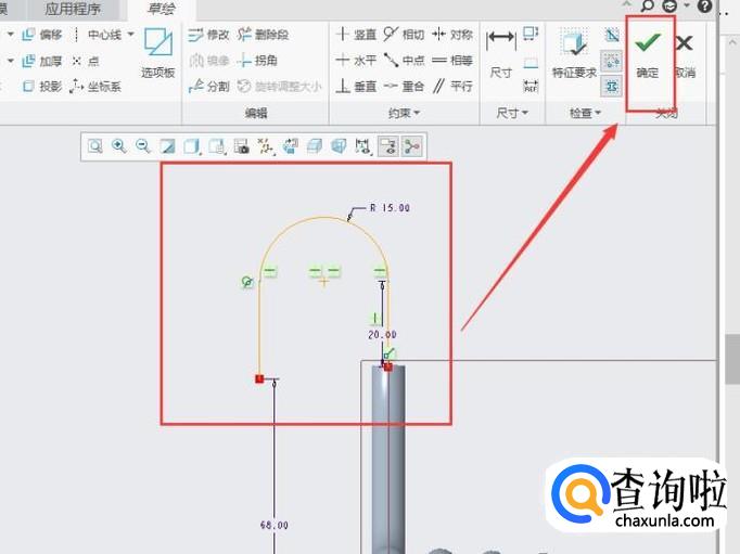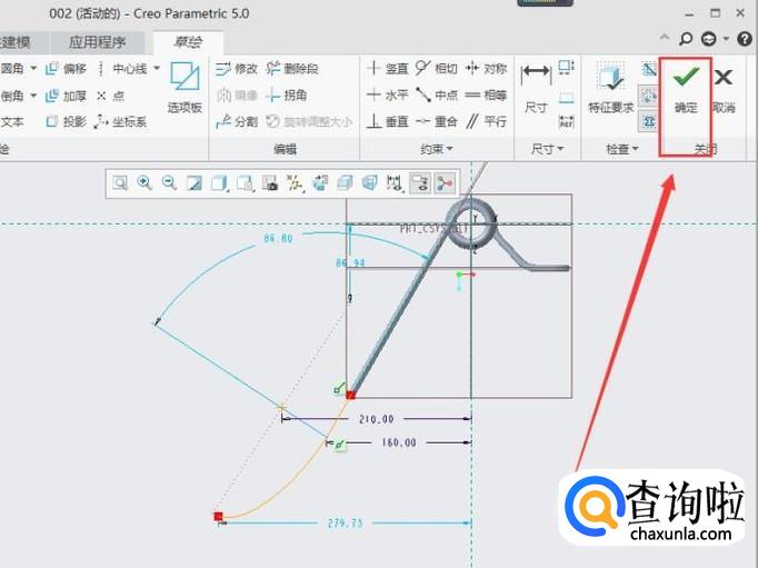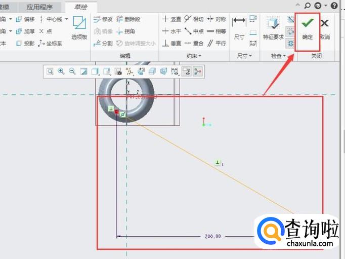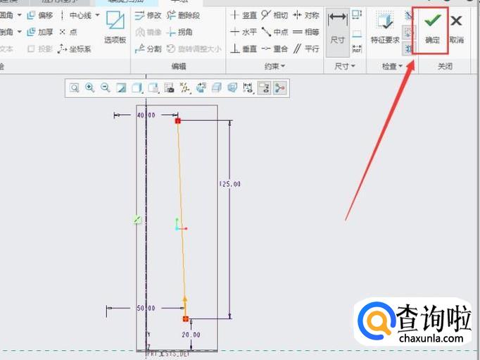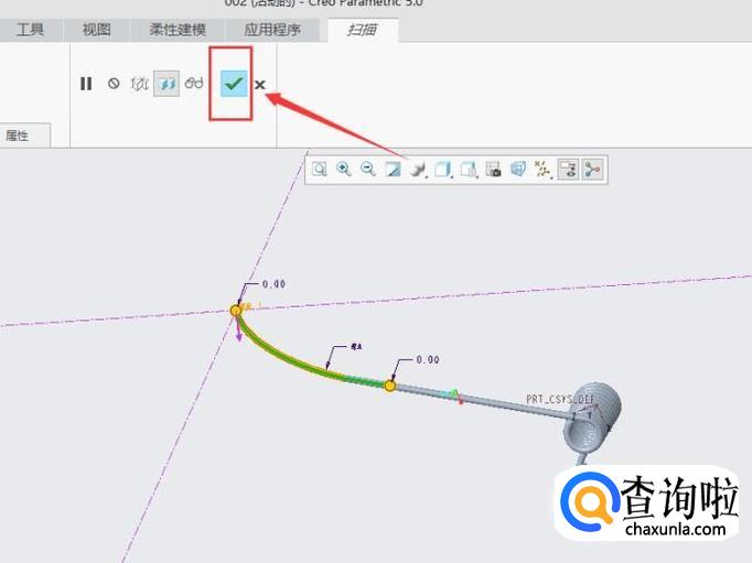 在草绘界面绘制扫描轨迹,绘制完成后点击“确定”即可,如图所示。