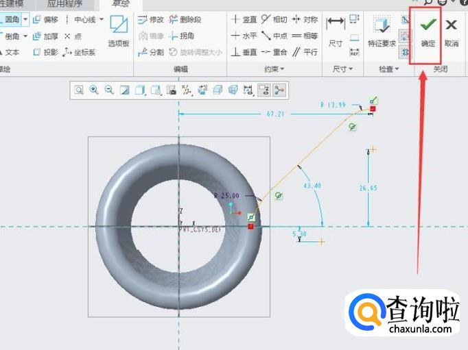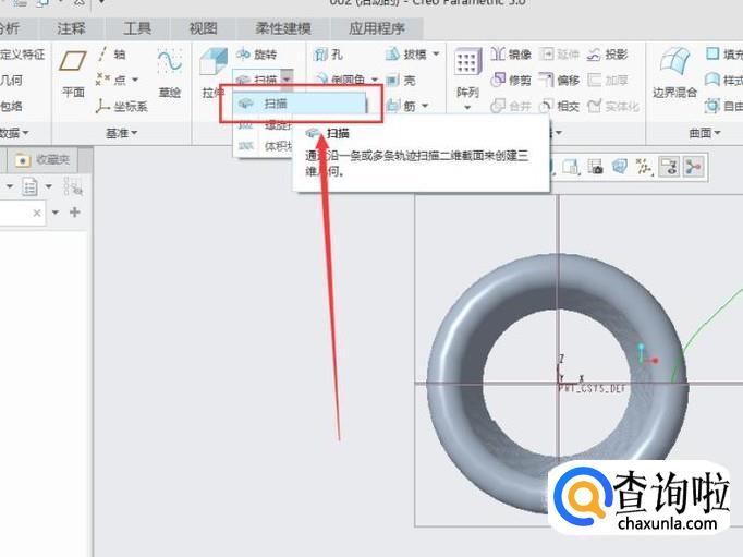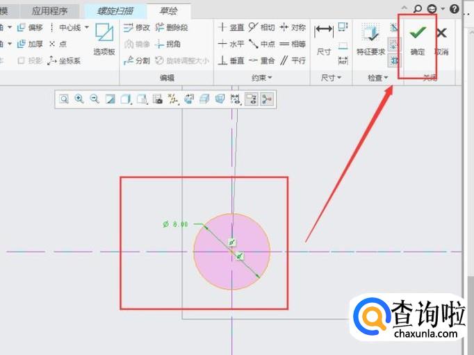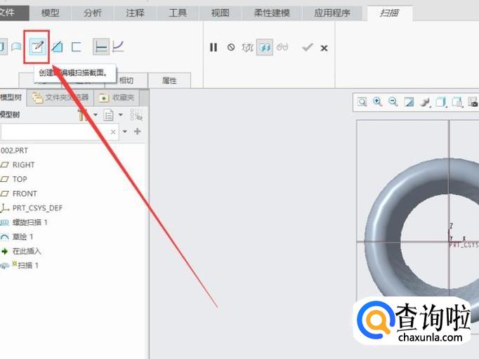 点击“绘制扫描截面”,进入草绘界面,绘制完成后点击“确定”即可,如图所示。