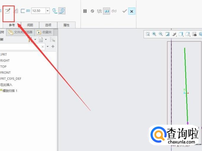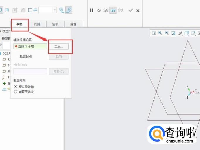 点击螺旋扫描,定义螺旋扫描的草绘界面,以“FRONT”面为例,如图所示。