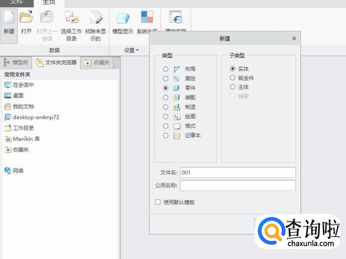 打开creo软件,创建一个新的零件,创建过程如图所示。