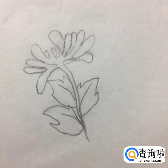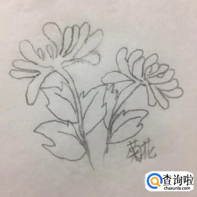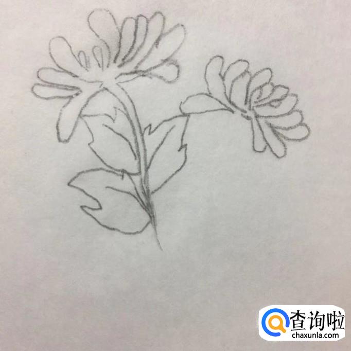 最后画出右侧菊花的叶子和枝干就可以了。一幅菊花就画好了,希望大家能够喜欢。