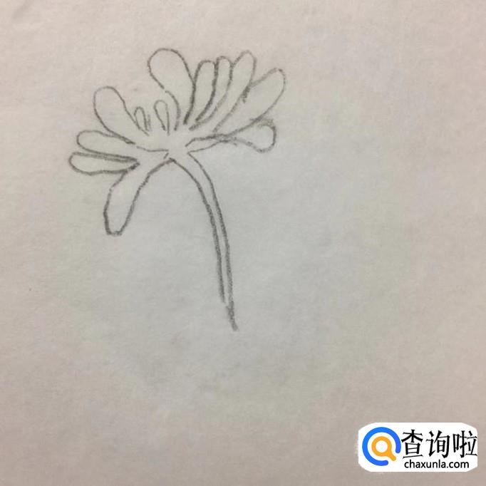 然后画出这株菊花的枝干,如下图所示。画这部分的时候应该画的上大下小会比较好。