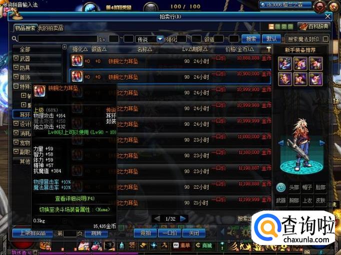 耳环方面也可以选择传说等级的,价格也不是很贵,相信大多数平民玩家还是承受得起的。