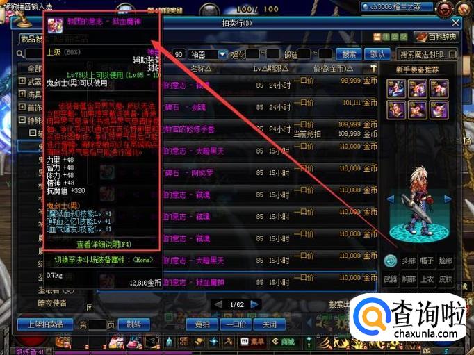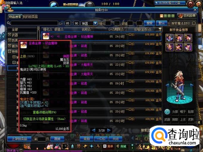 然后特殊装备方面我们选择购买拍卖行的神器装备,价格并不贵,只需要近百万金币即可全部斩获。