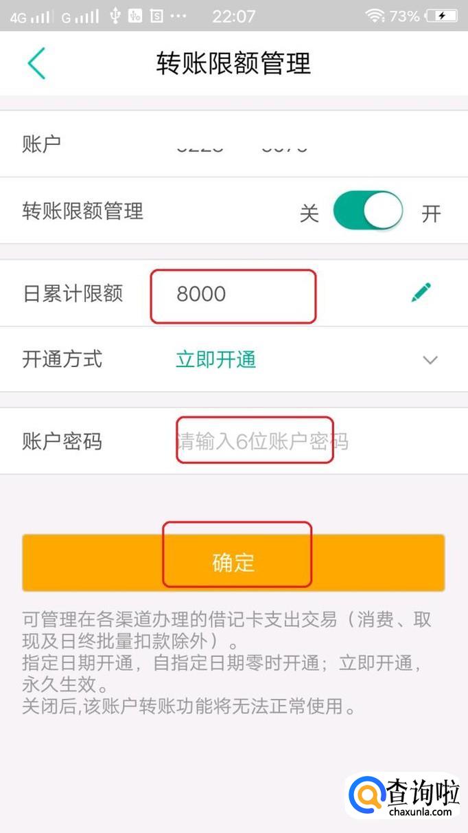 我们输入日累计限额,然后输入账户密码,点击“确定”。