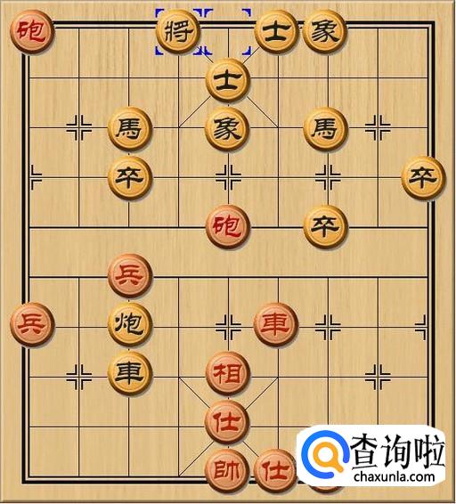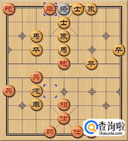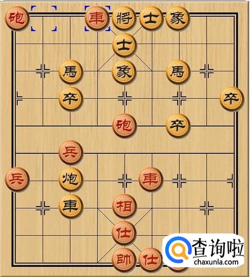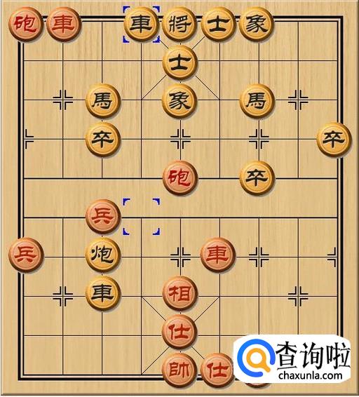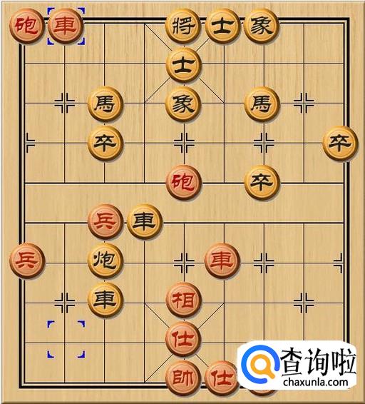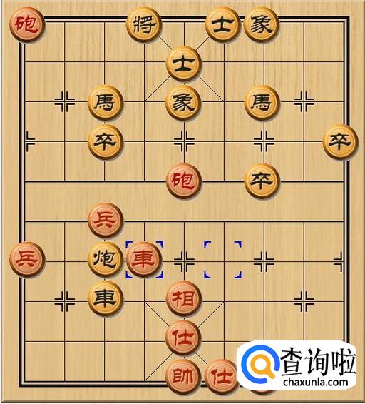 黑方可以回马,也可以用车来抵挡红方在底线的双将。黑方考虑到红方会利用抽将杀黑方车,于是,黑方车4退5,黑方车退回底线参与防守。如图所示。