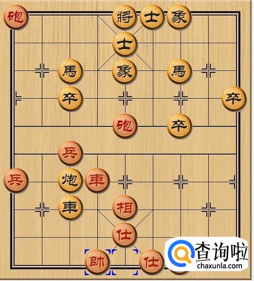红方先行,红方车八进八,红方车下到底线,红车将军。当然,红车也给红方炮搭起了炮架,红炮也将军。如图所示。
