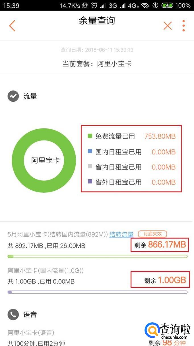 在详情页面中,就可以看到当前已经使用的免费流量,套餐内剩余的流量等信息。