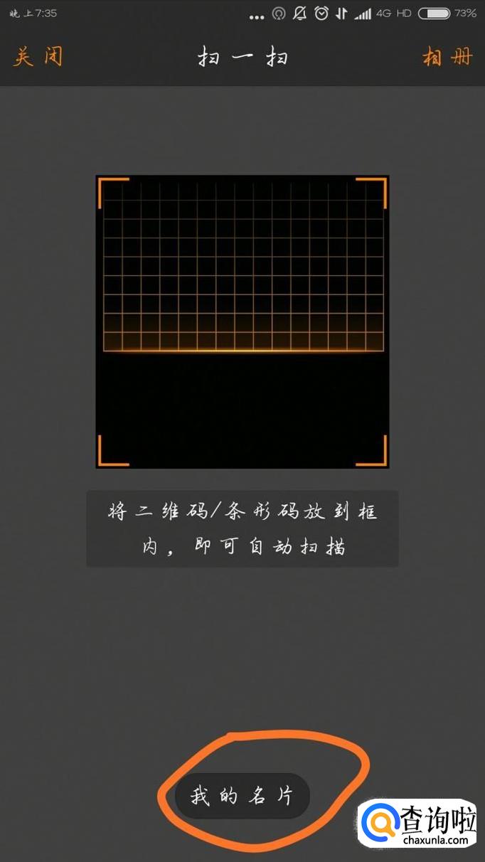 进入相应的扫描页面,点击页面下方的“我的名片”,如下图所示