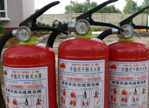一般干粉灭火器筒体标签上标明的是A类火、B类火和C类火,所以又称为ABC干粉灭火器,A类火灾指的是固体火灾,比如建筑物、木料、布类、塑料等固体原料产生的火灾;B类火灾指的是可燃液体火灾,比如油类等具有可流动性的原料产生的火灾;C类火灾指的是可燃气体火灾,一般指各类气体产生的火灾,除此之外,干粉灭火器还可以扑灭一般电器类火灾,比如电线老化引起的火灾等跟电器相关的火灾。