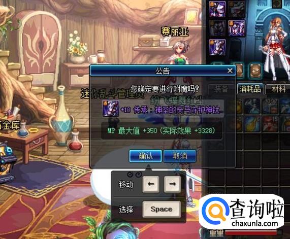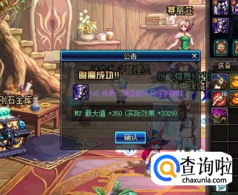 右键点击宝珠后,点击所要进行附魔的装备,在弹出的系统公告中,点击“确认”按钮。