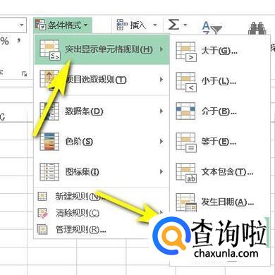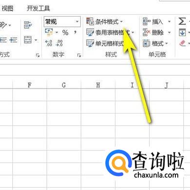 我们看下方展开的各个功能组。如图所示,在“样式”组中点击“条件格式”下拉按钮