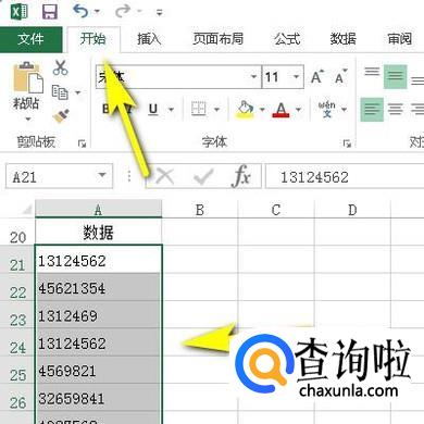 首先,我们要选中数据区域;再点“开始”选项卡。