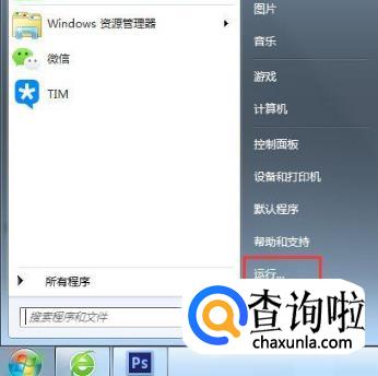 点击"开始"菜单,然后点击"运行";或者直接按住键盘上的“windows键+R键”,即可进入运行页面。