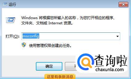 在对话框内输入”msconfig”,然后点击"确定"按钮。