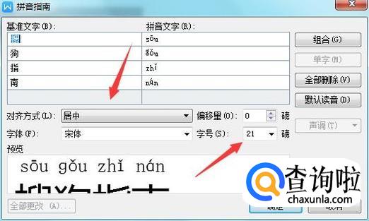点击拼音指南选项在弹出的对话框内设置参数如图所示: