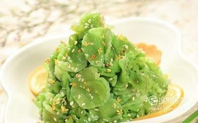 再将莴笋片放入盘中,然后,加入适量的糖、辣椒油,花椒油,放入适量蒜泥、香菜、芝麻油,拌匀即可食用。