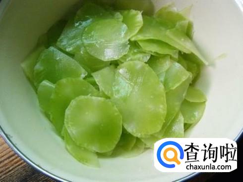 首先,将莴笋去皮,然后,洗净,切成片,放入盘中。