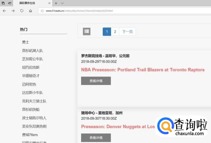 点击NBA,就会发现下面出现很多热门队伍还有场次的时间地点,可以选择合适自己行程的或是自己喜欢的球队。