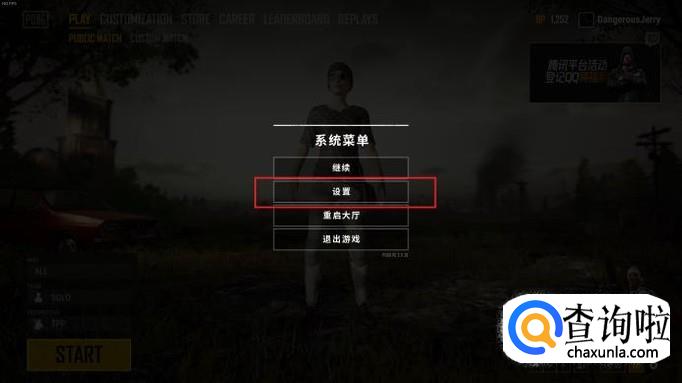 打开绝地求生之后,在大厅里,点击右下角的设置,或者摁Esc键,弹出设置界面。