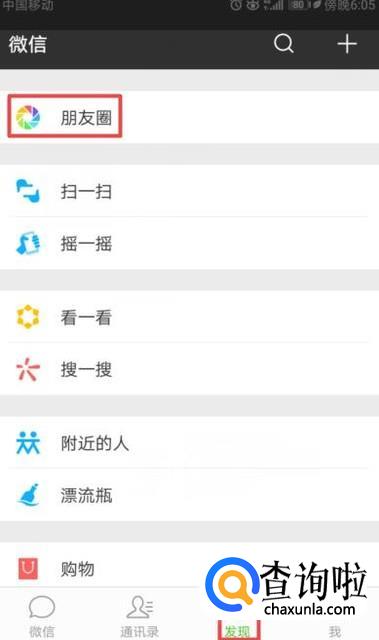 首先,我们打开我们的微信,然后我们点击发现,之后我们点击朋友圈;
