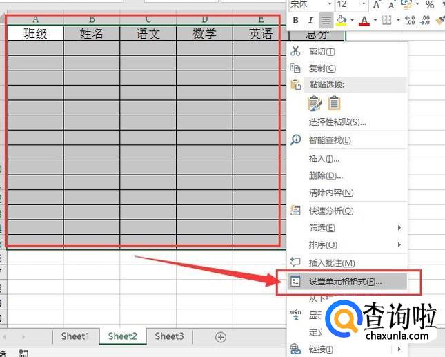 选中带有表格的区域,点击鼠标右键,选择“设置单元格格式”,