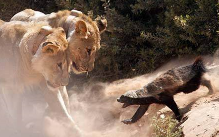 猛兽的爪子也很难穿透蜜獾强韧的皮肤,咬上去也很难咬透,而且蜜獾皮肤内的肉会滑开无法造成内脏压迫,好像在啃一块牛皮橡胶。但蜜獾却能从皮肤下转动身体转过来咬狮子的脸和鼻子,或者用爪子挖狮子眼睛。这才是蜜獾嚣张的资本!这对狮子来说代价太大了,所以轻易狮子不肯去招惹这样的刺头!