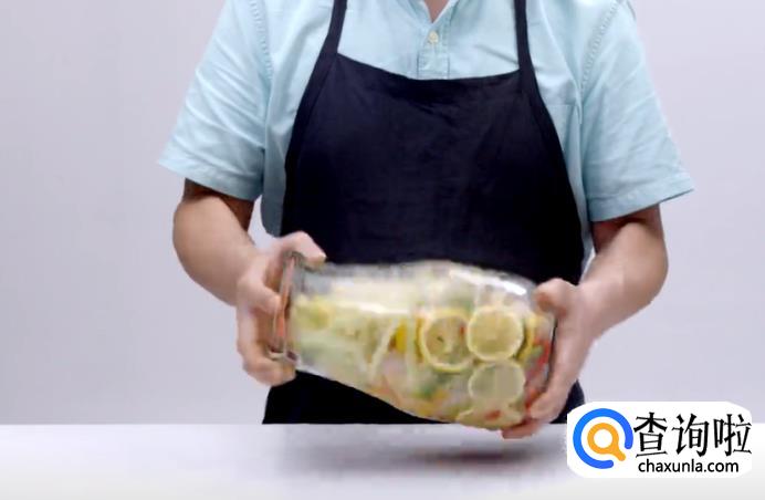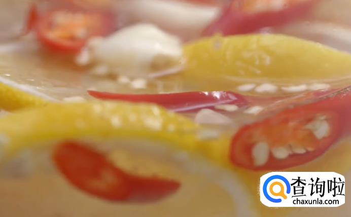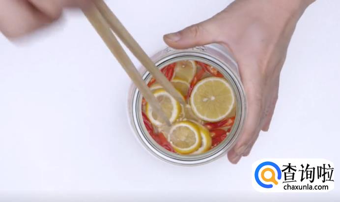 接下来,将切好的大蒜、小米辣和柠檬片放进去,均匀搅拌。