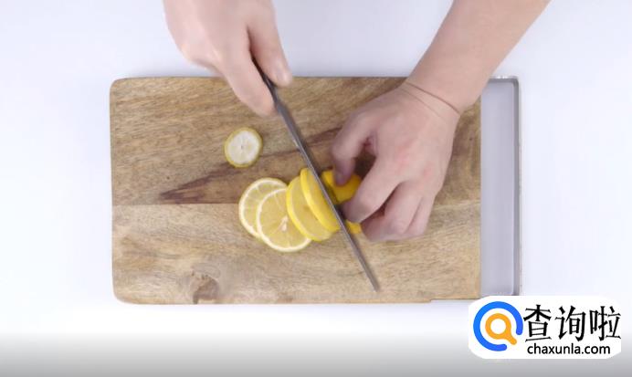 首先,将准备好的柠檬切成薄片,再将小米辣斜着切,切成马耳朵的形状。