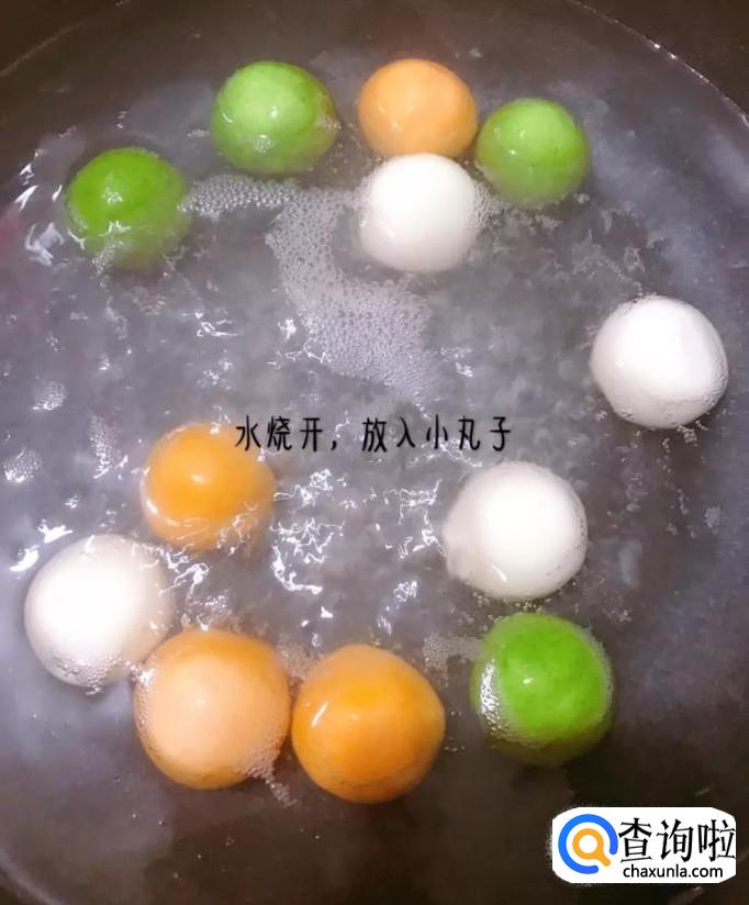 然后锅中放入适量的清水,待水烧开倒入圆子煮五分钟,如下图所示。