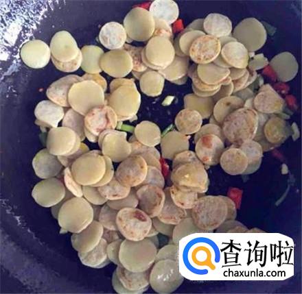加上食盐、生抽以及一点味素,然后切点韭菜段放进去翻炒一下出锅。