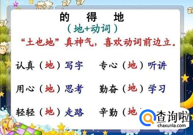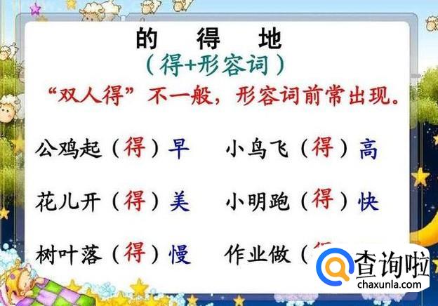 的、地、得用法补充说明: