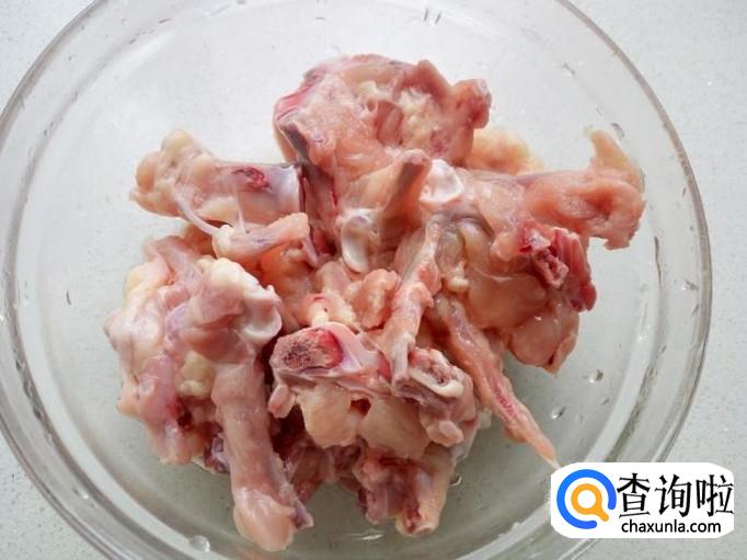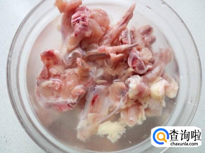 鸡叉先用水浸泡一下,去除上面的血水。然后用水清洗干净,控干水分。