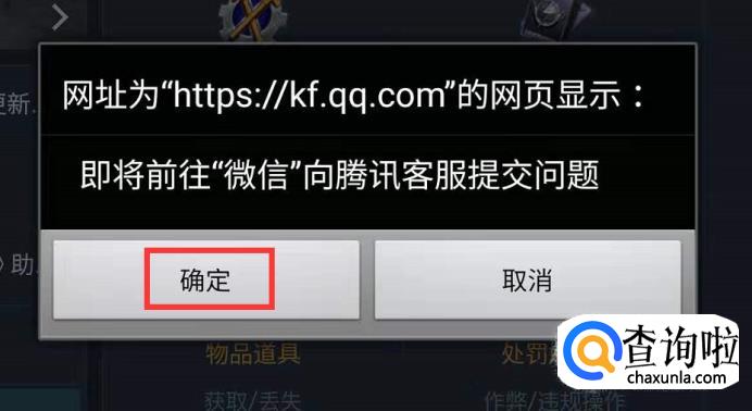 系统会提示“需前往微信向腾讯客服提交问题”,点击确定。
