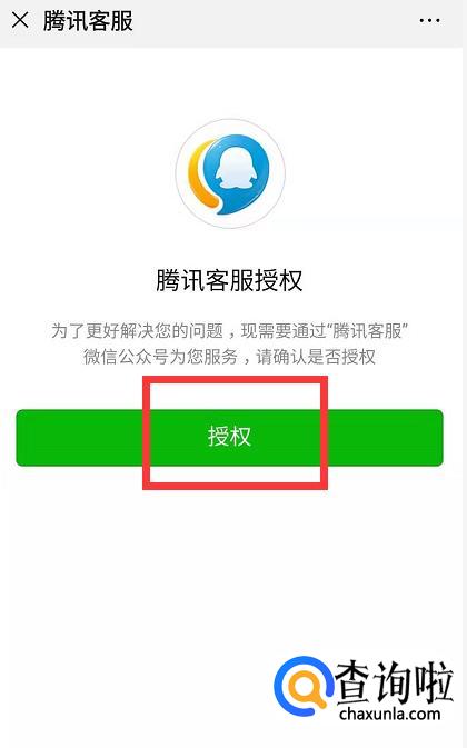 看到腾讯客服页面后,点击授权。在公众号里就可以提交问题了。