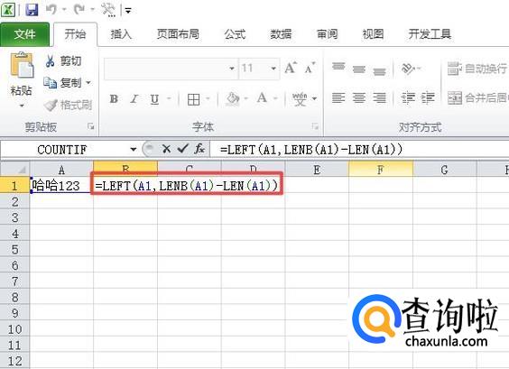 之后我们选中后面的单元格,然后我们输入=LEFT(A1,LENB(A1)-LEN(A1)),之后我们按回车键;