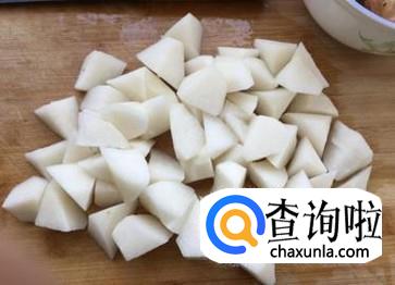 在等待的同时,咱们把白萝卜去皮切成块状。