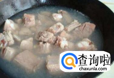 一般我们炖萝卜都不要白水炖,这样炖出来的萝卜味道不好,今天就来教大家做萝卜炖排骨。我们先把买回来的排骨剁成块状,然后过开水焯一遍。
