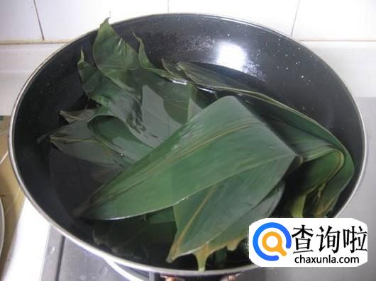 烧一锅热水,然后将粽叶放到热水里煮一下,煮到粽叶变色变软为止。
