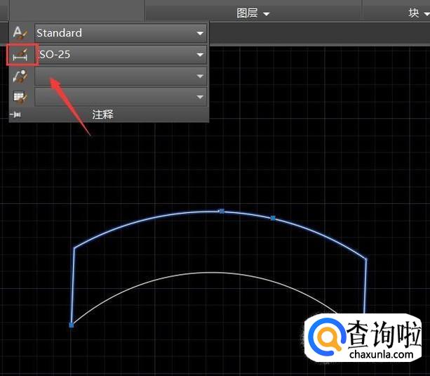 选择标注的圆弧在注释里找到标注样式选项,如图所示:
