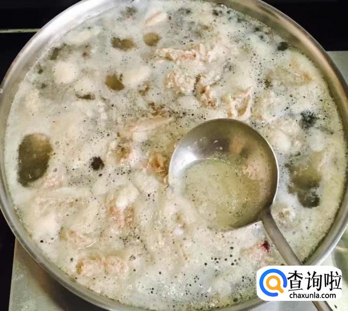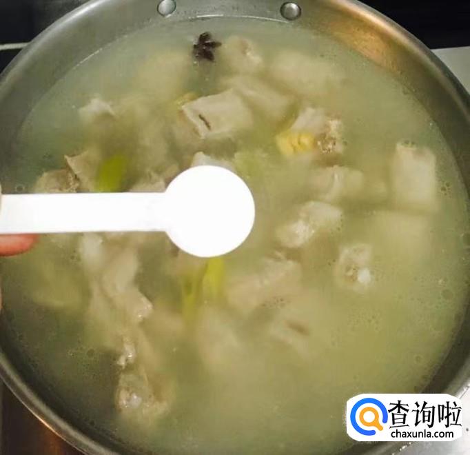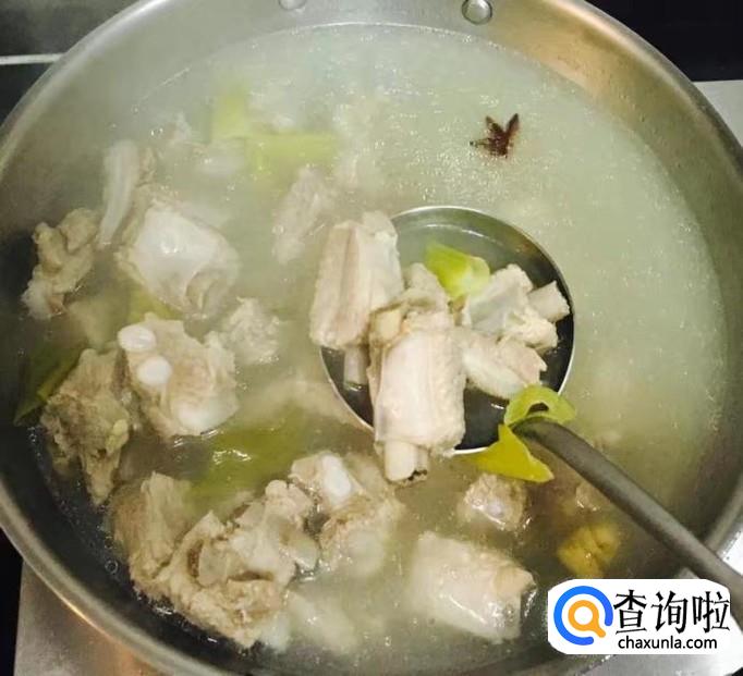 当汤锅中的汤汁呈白色并且排骨肉软烂时即可关火