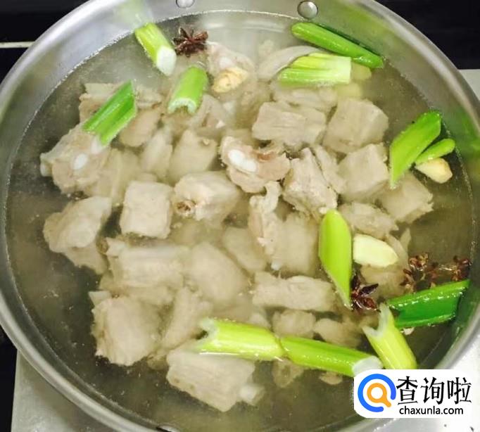 浸泡好的排骨凉水下锅煮至沸腾后撇净浮沫后捞出,然后用清水再冲洗干净杂质