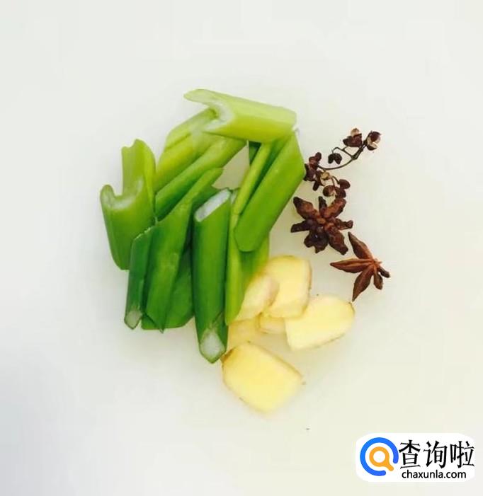 葱、姜剥去外皮清洗干净分别切成葱段、姜片,八角、花椒冲洗干净备好