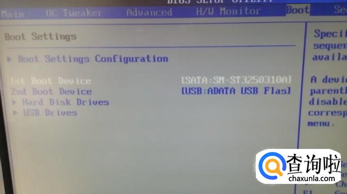 然后重新开机,在刚显示画面时就按下DEL键进入BIOS,选择上面的“Boot”选项,在下面选择“第一启动设备”,回车。