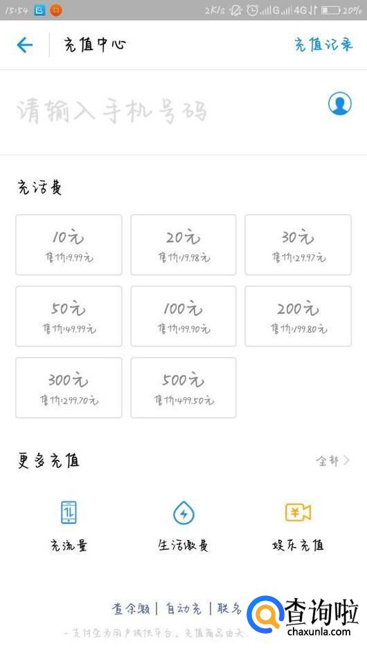 在充值中心找到花费充值,输入手机号,选择充值的金额。