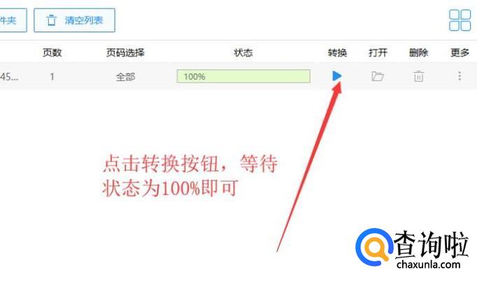 然后点击执行按钮,等待状态是100%就完成了转化,如下图所示