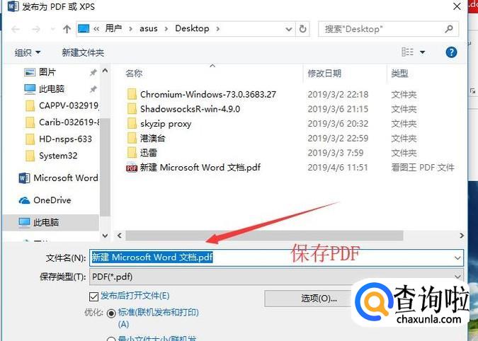 然后会弹出PDF保存界面,给文件起一个名字就可以保存了,如下图所示